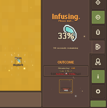 Great game. I have like 500 golems lol, but something seems to have bugged at about depth 550 as i have a bunch of topsoil/rich dirt that's popped up with 15m durability... Might not be a bug but it's not consistent like its a layer so i'm on the side it might be a bug.